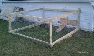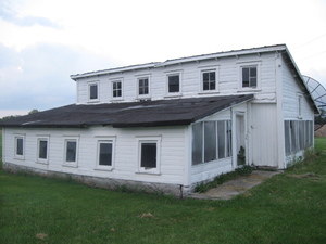 The front low room is un-usable as the roof is close to collapsing, but the back room is in fair condition. I walled off the back one-third of the back room to house the new chickens and it is more than enough room for the eight that we currently raise.