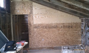 The front low room is un-usable as the roof is close to collapsing, but the back room is in fair condition. I walled off the back one-third of the back room to house the new chickens and it is more than enough room for the eight that we currently raise.